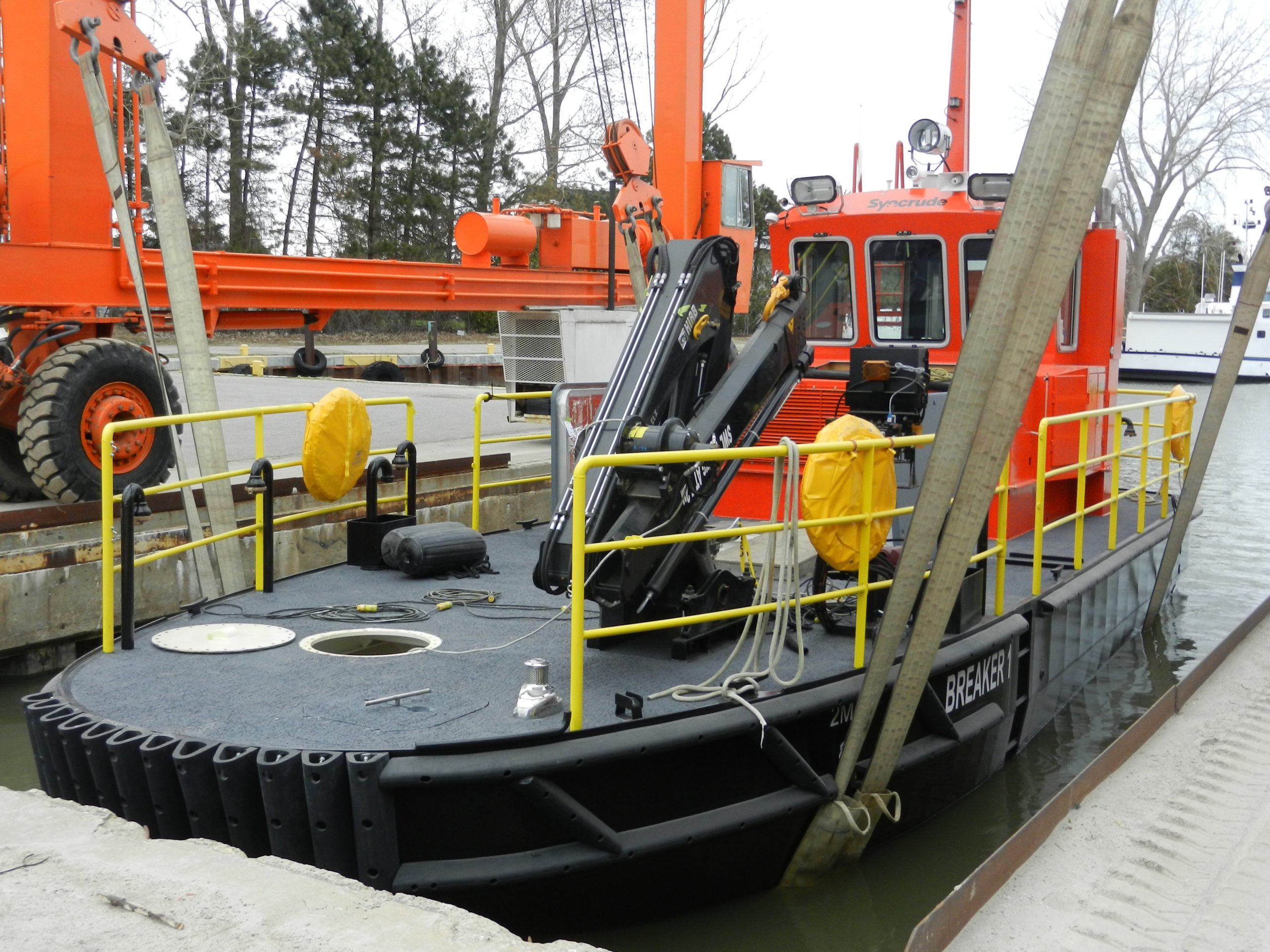 This project consisted of a design check and production drawings based on contract drawings from AMEC Americas Ltd. for two ice breaking pond support vessels for Syncrude for use in the Alberta tar ponds. Detailed production and system drawings and lofted parts were produced by E.Y.E. Marine Consultants for Hike Metal Products Ltd.