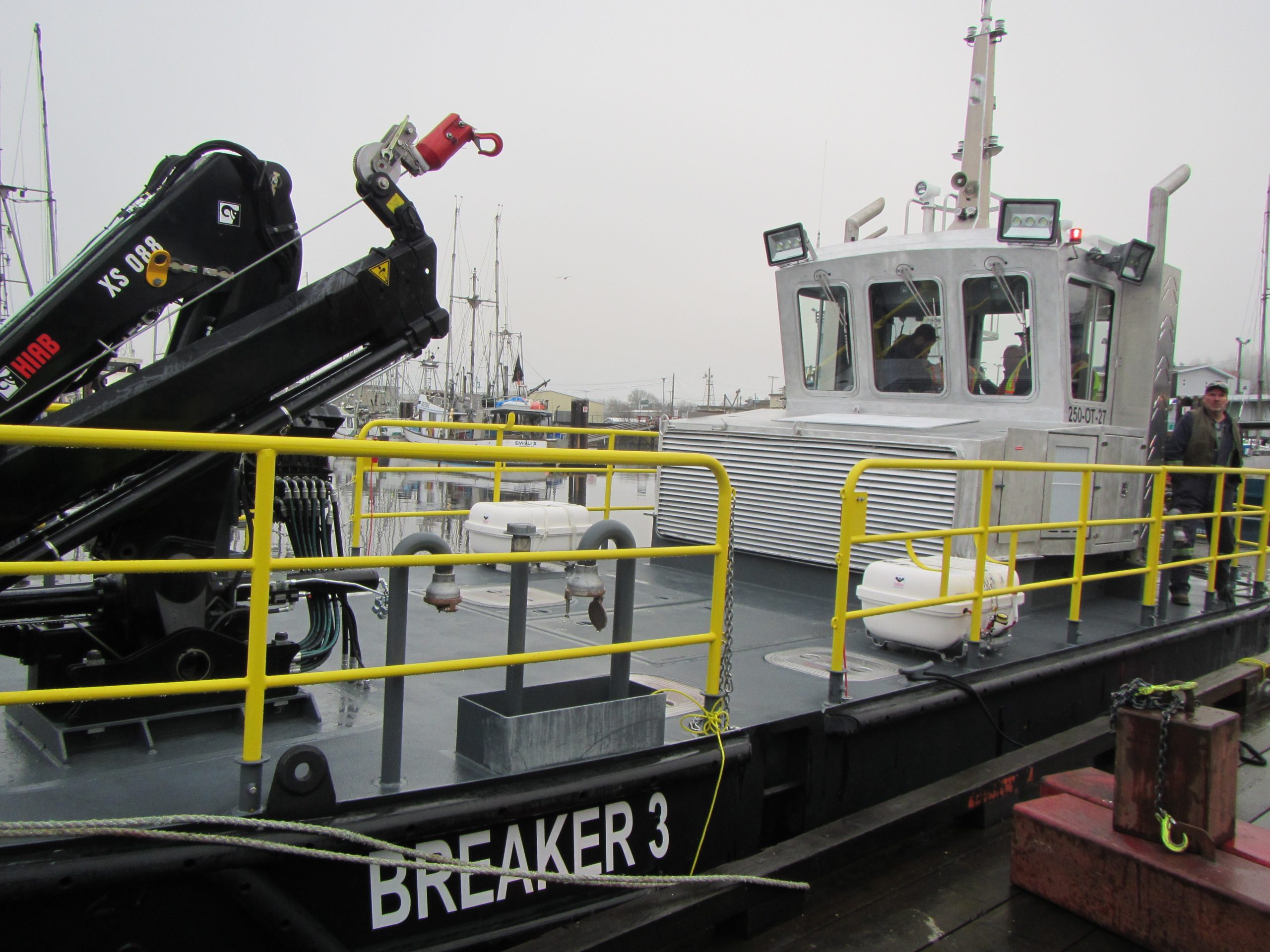 This project consisted of the design of one more ice breaking pond support vessel for Syncrude for use in the Alberta tar ponds. See also Breaker 1 & Breaker 2. Detailed production and system drawings and lofted parts were produced by E.Y.E. Marine Consultants for building by Canadian Maritime Engineering Ltd.