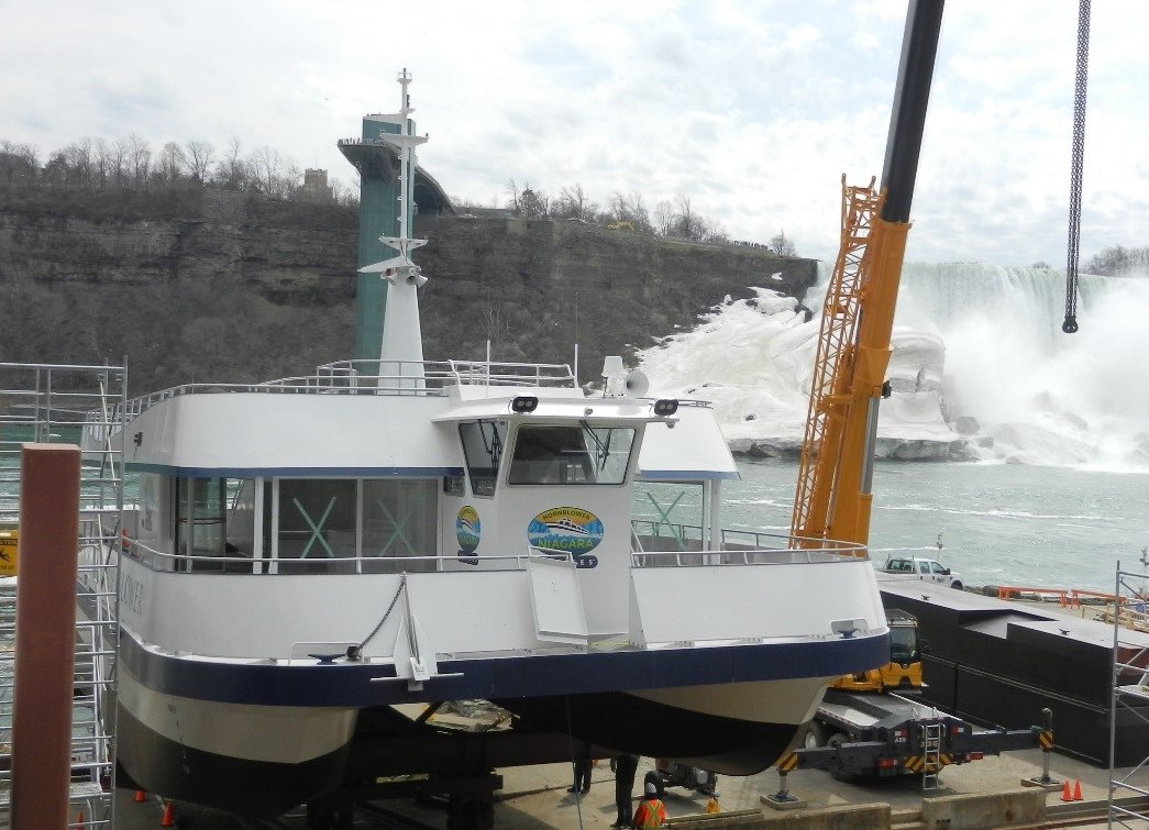 Based on a concept design by Elliot Bay Design Group, these 700 passenger vessels are catamaran tour boats for seasonal operation on the Niagara River, between the Falls and the Rainbow Bridge. They are currently in service with Niagara City Cruises. The design of the vessels is in compliance with the Rules of Lloyds Register and certificated by Transport Canada. A full set of production drawings were created, including lofted parts. They were modular designs of 3 parts each, for assembly at their final location. Once complete, a full set of as-fitted drawings were produced, as well as stability booklets for each.